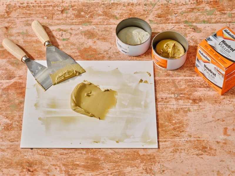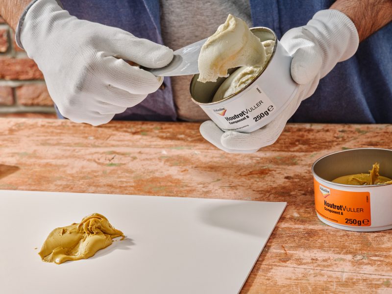 - Houtrotvuller aanbrengen met een plamuurmes.